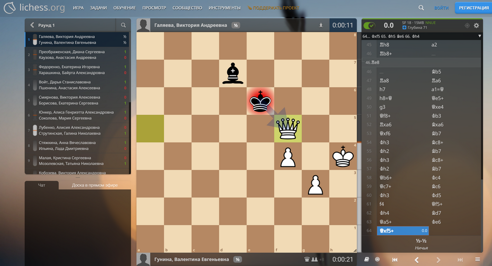 06 нояИтоги первенства Москвы среди девушек до 19 лет: 1. Ульяна Кусакина – 5,5 очков из 7, 2. Яна Мизерова, 3. Лада Хлыповка, 4. Вероника Кузнецова – по 4,5