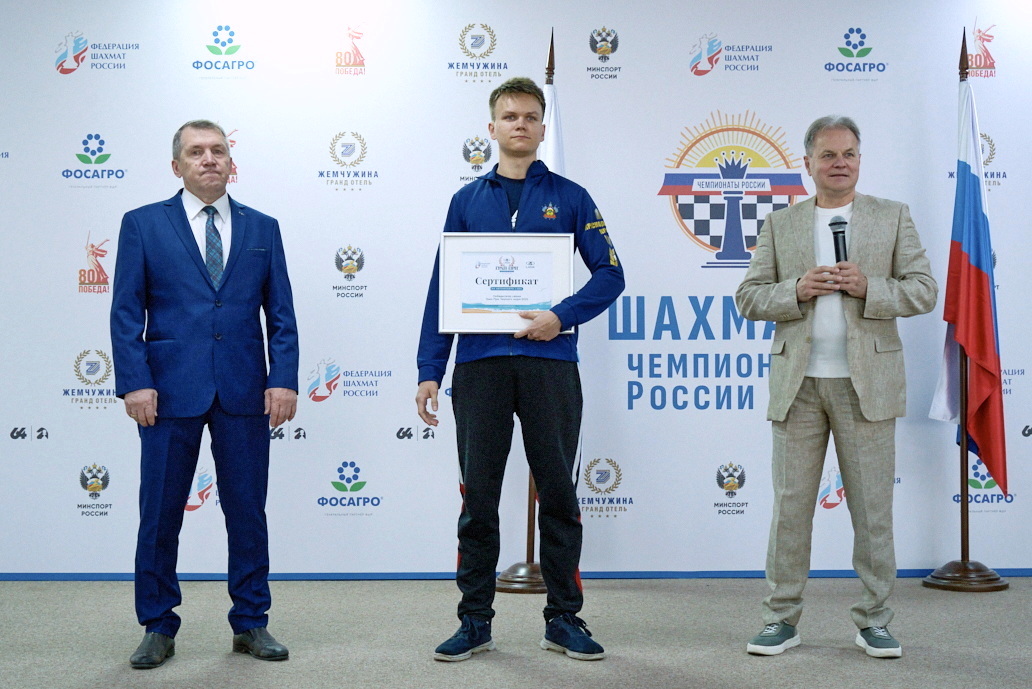 Сергей Смагин вручил победителю пятого сезона «Гран-При Черного моря» Никите Афанасьеву сертификат на автомобиль LADA от официального автомобильного партнера турнира АО «АвтоВАЗ». Отметим, что гроссмейстер из Краснодарского края выигрывает серию уже третий год подряд.