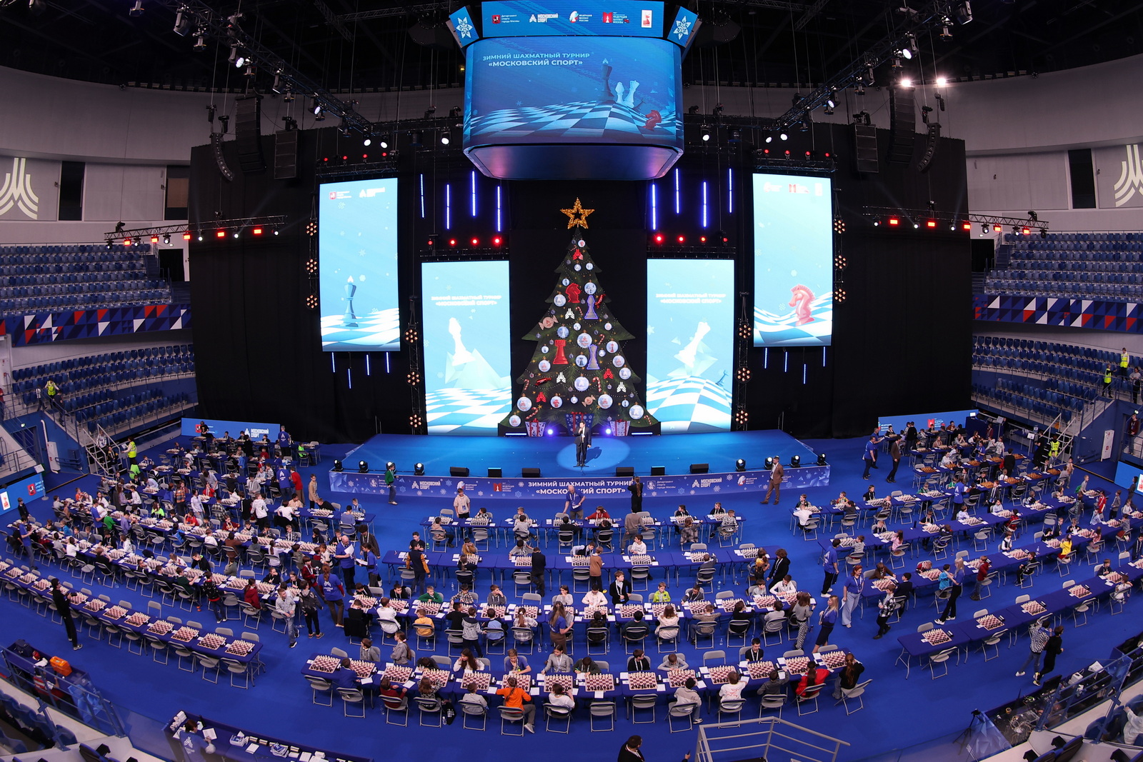 К участникам и зрителям в этот день со сцены обратились президент Федерации шахмат Москвы Сергей Лазарев, председатель наблюдательного совета ФШМ Владимир Шумилин, директор турнира Артем Ахметов и двукратная чемпионка мира по блицу, пятикратная чемпионка России Валентина Гунина.