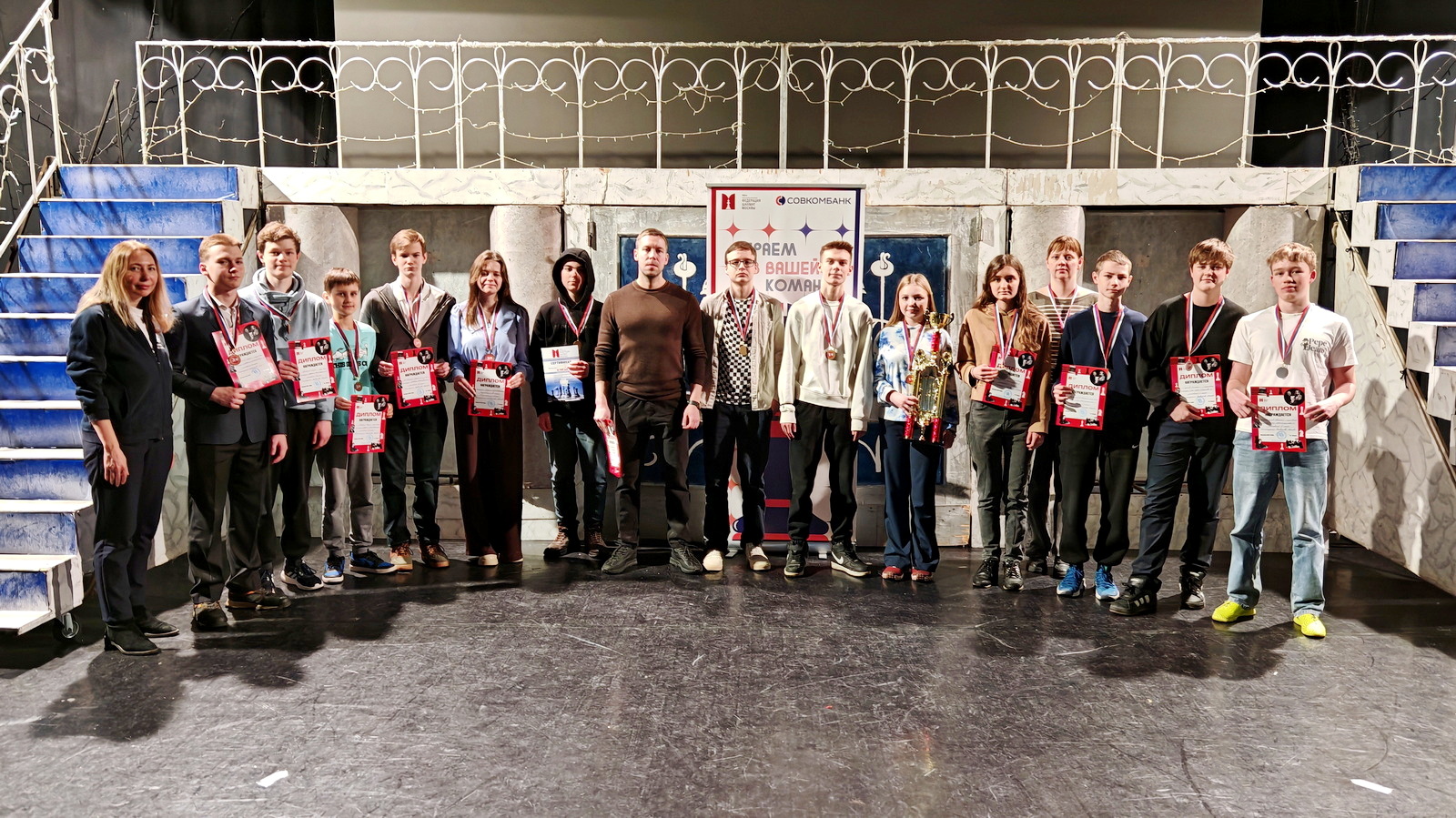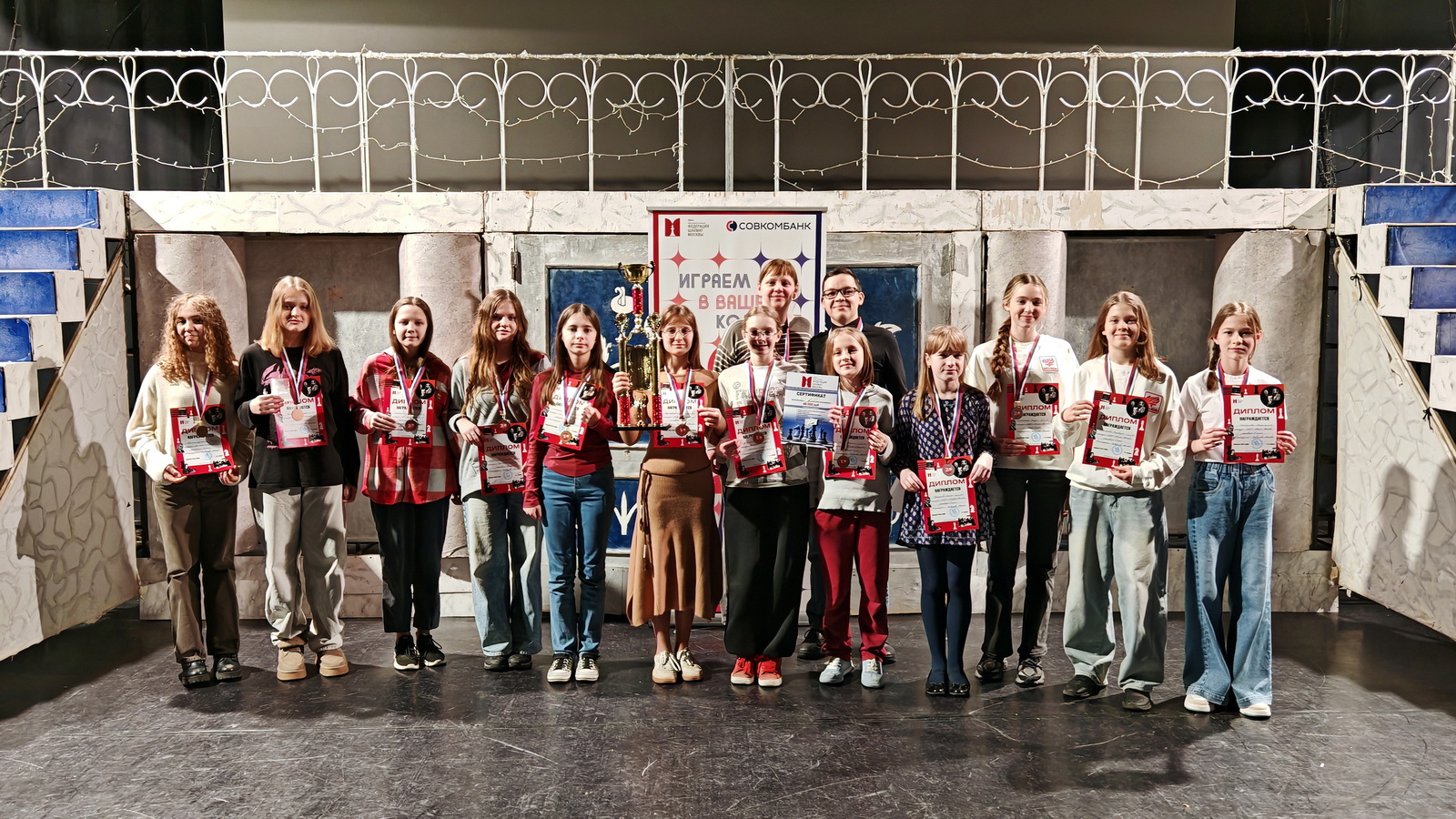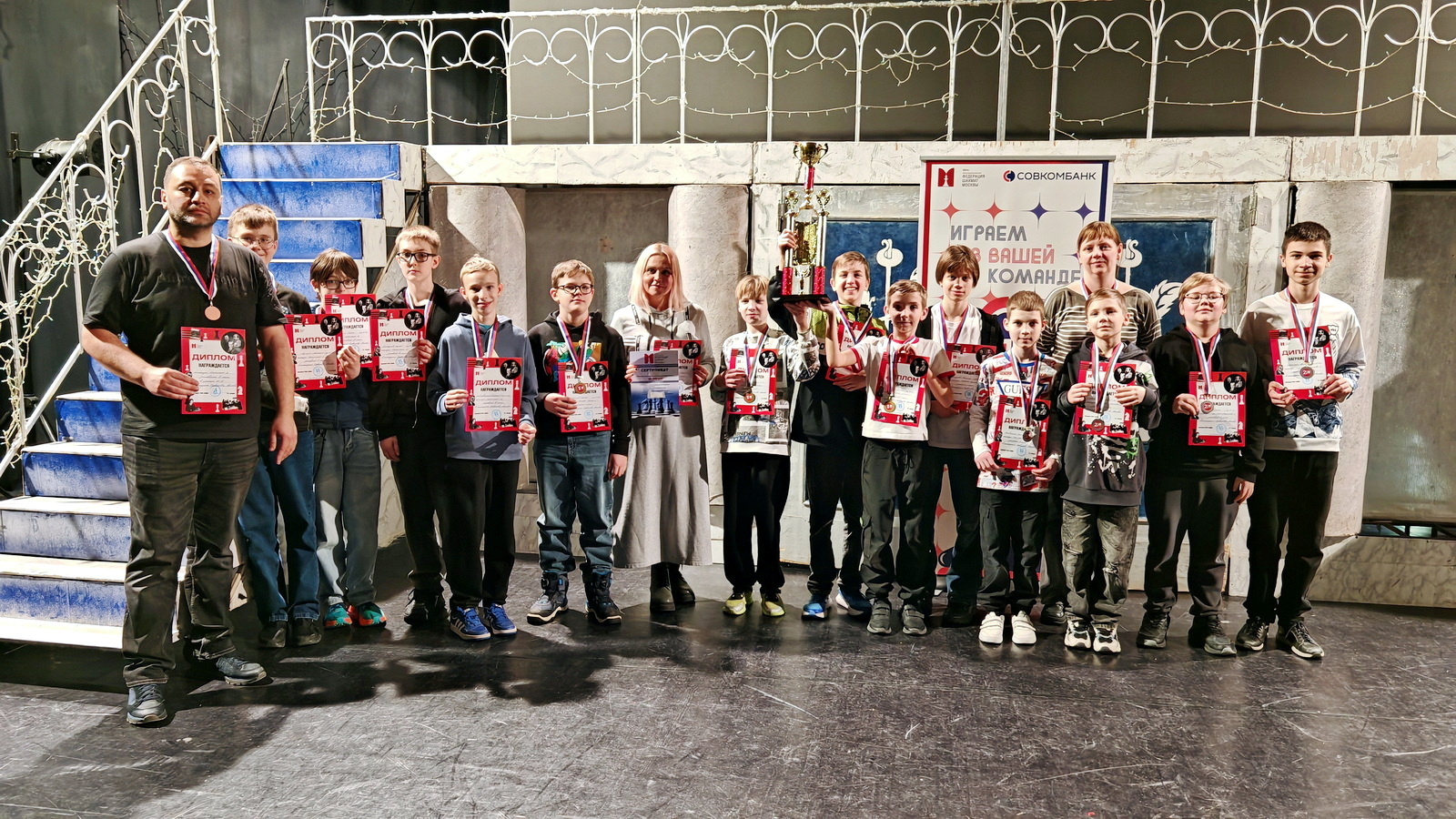 Церемония награждения прошла на сцене актового зала ЦЮДТ «Бибирево». Команды-победительницы были награждены кубками и получили сертификаты на приобретение шахматной продукции, всем призерам были вручены медали и дипломы.