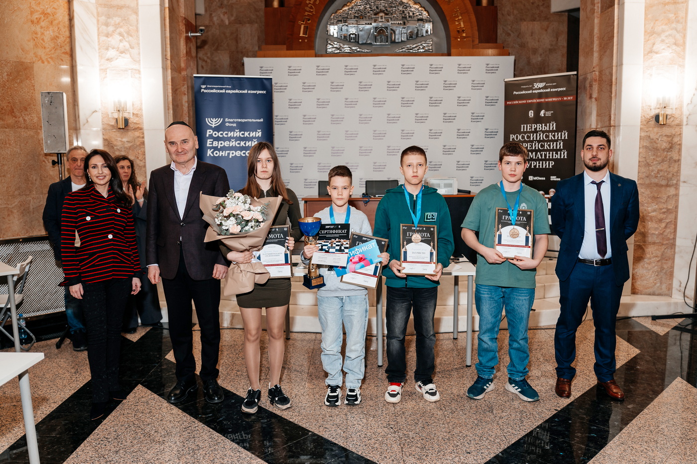 Первый российский еврейский шахматный турнир проходил с 22 марта по 12 апреля в нескольких городах страны. Соревнования проводились в два этапа. Финальный турнир состоялся в минувшее воскресенье в Москве в Мемориальной синагоге РЕК и был приурочен к 30-летию Российского еврейского конгресса (РЕК).